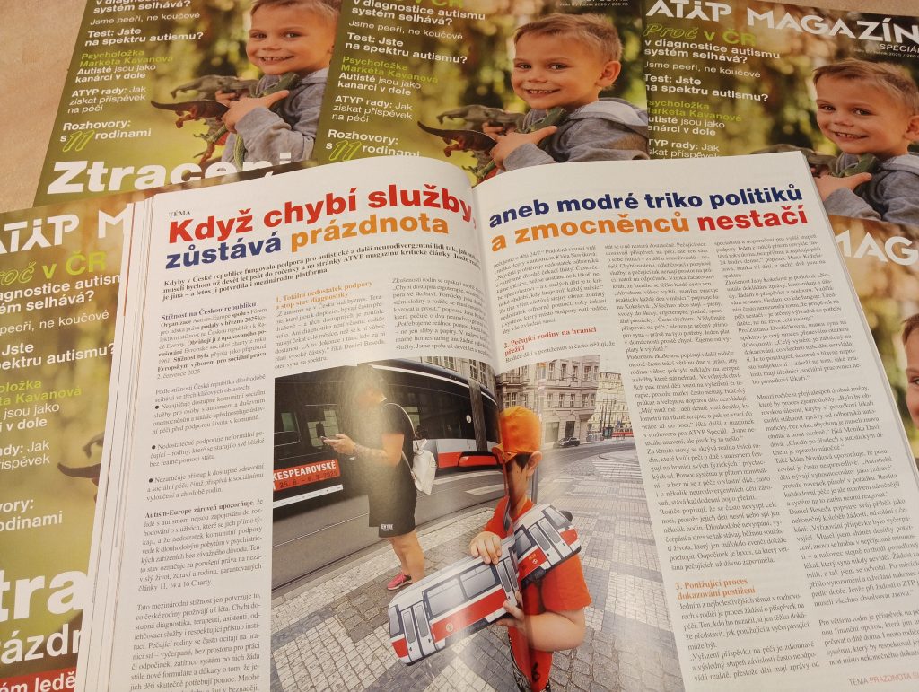 Tyto zkušenosti nejsou ojedinělé. Česká republika byla v roce 2025 jednou z mála zemí Evropy, která nemá funkční systém komunitních služeb a krizové péče pro lidi s autismem. Příběhy rodičů a autistických dospělých, které přináší nový ATYP Speciál 2026, ukazují ještě tvrdší obraz:
